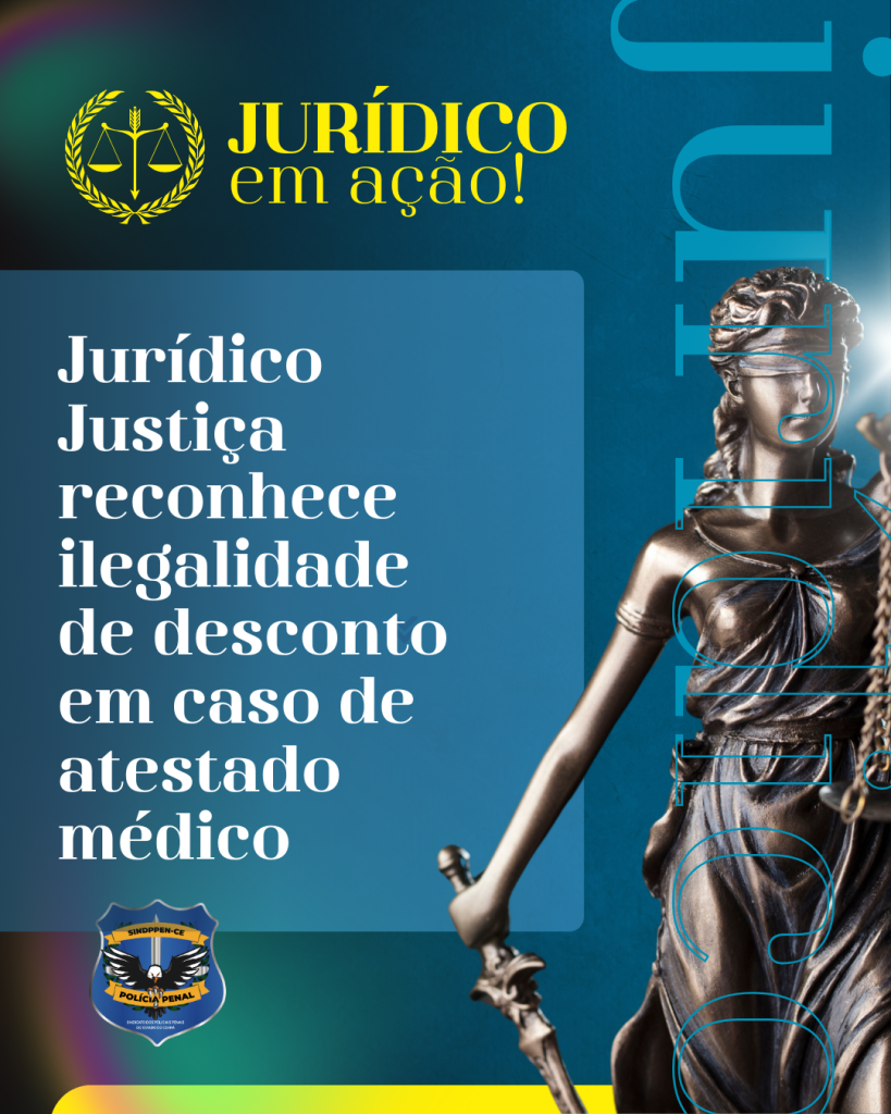 Julho 22, 2025O Sindppen-Ce informa sobre mais uma importante conquista judicial em favor de seus filiados. Em decisão proferida pela 1ª Vara da Fazenda Pública de Fortaleza, a Justiça declarou a nulidade do desconto salarial aplicado ao policial penal C.C.F., que havia apresentado atestado médico válido.