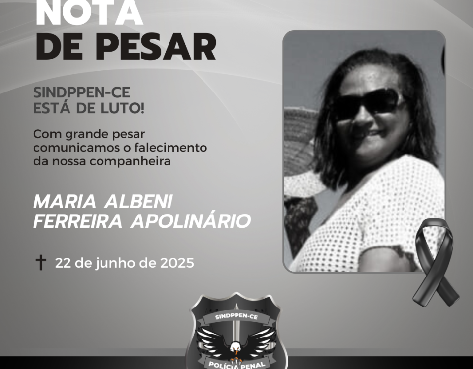 É com profundo pesar que a Diretoria do Sindppen-Ce recebe a notícia do falecimento da policial penal Maria Albeni Ferreira Apolinário, ocorrido neste domingo, 22 de […]